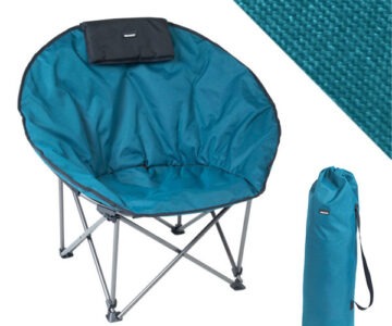 Кръгъл платнен къмпинг стол Trigano Electra, проектиран да осигури удобно място за сядане и оптимален…