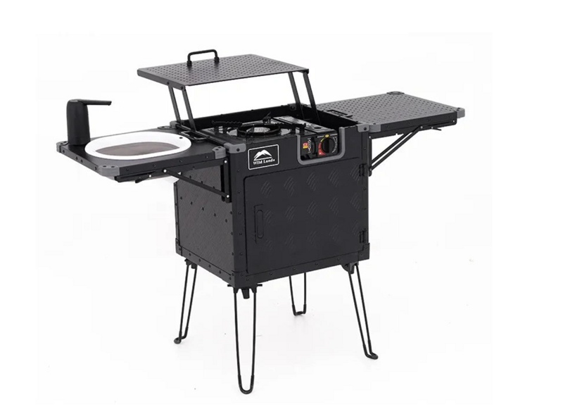 Многофункционалната преносима кухня Wild Land се откроява с богатото си оборудване, висококачествена изработка и компактни размери – идеален избор за къмпинг и готвене сред природата.