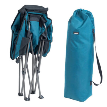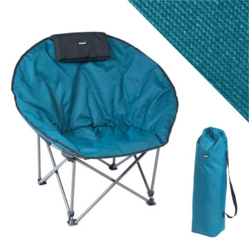 Кръгъл платнен къмпинг стол Trigano Electra, проектиран да осигури удобно място за сядане и оптимален комфорт по време на релаксация на открито.